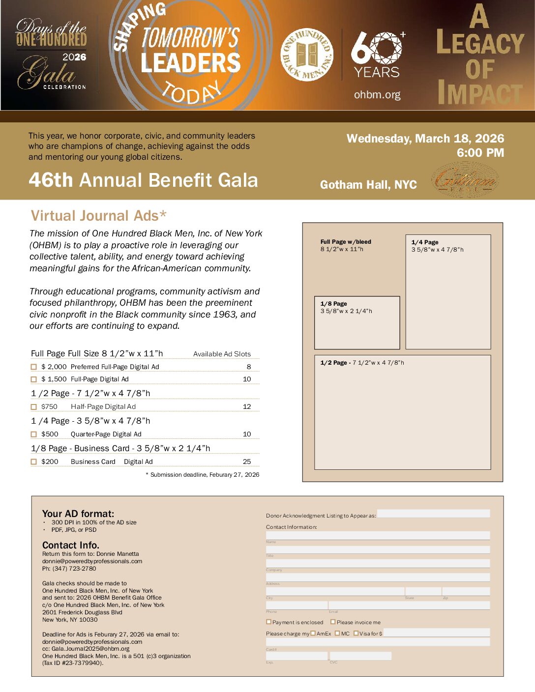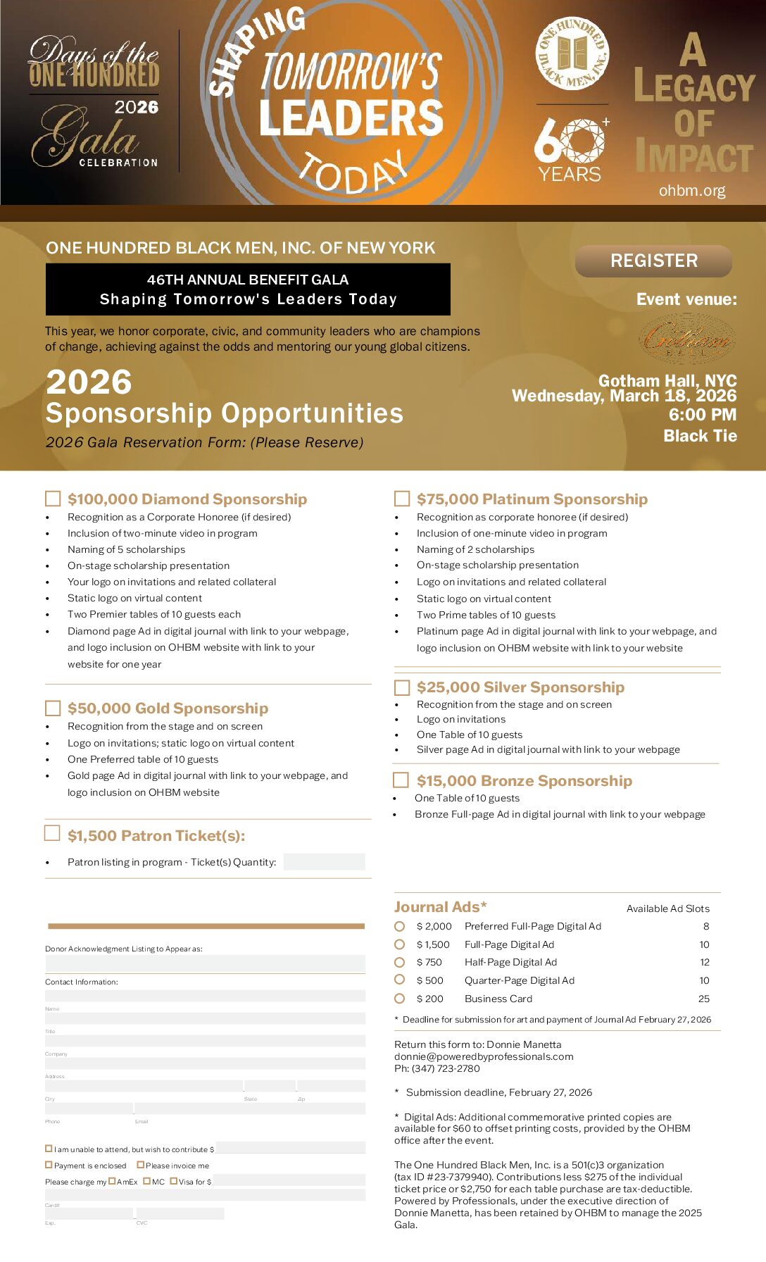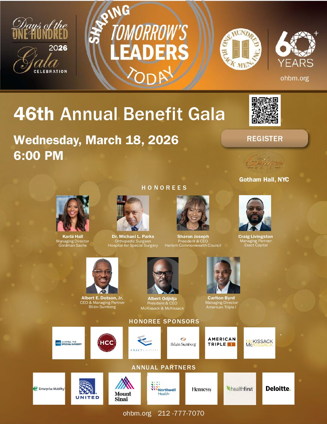 “The One Hundred Black Men of New York are professional Black-Men committed to civic engagement and community amelioration. On behalf of our president, the board of directors, and all of our members, we thank you for supporting our gala, golf, and other activations which allow us to continue the important work we do throughout New York City.”